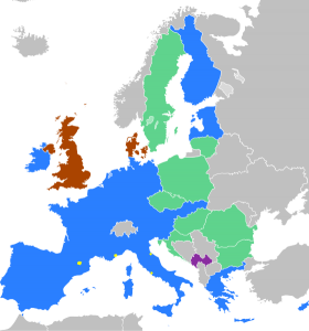 Euro ist die Bezeichnung für die gemeinsame Währung der meisten Staaten der EU. Seit dem 1.1.2002 haben Österreich, Belgien, Deutschland, Spanien, Finnland, Frankreich, Irland, Italien, Luxemburg, Niederlande, Greichenland und Portugal eine gemeinsame Währung. Später kamen noch Slowenien, Zypern, Malta, Slowakei, Estland und Lettland dazu.