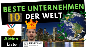 Bevor man sich zu sehr mit spezifischen Aktien aus der zweiten Reihe beschäftigt, sollte man zuerst einige der besten Unternehmen der Welt im Depot haben. Diese profitieren meist von den Digitalisierungstrends und können dank starker Marke, Cashreserven und Kultur auch Krisen gut meistern. Meist kommt man mit den Produkten dieser Unternehmen täglich in Berührung und schätzt diese. Ausgehend von der Frage, welches Unternehmen man sich wünschen würde, wenn man eins geschenkt bekommen würde gibt es hier die Top 10 der Unternehmen der Welt im Video wozu Alibaba, Amazon und Apple gehören.